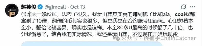 Furthermore, KOL sanyi.eth reflected on their own experience, stating that after incurring losses by shorting MYX, they have actively avoided such highly volatile “demon coins.” While COAI surged from $0.3 to $61 before retracing to $18, and the project had previously secured approximately $17 million in funding and positioned itself in the AI sector, indicating a non-negligible foundation, its price-to-valuation ratio clearly showed an overheated market. Retail participation in such extremely volatile tokens, sanyi.eth concluded, often leads to liquidation or exorbitant fee payments.