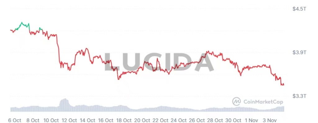 Total market capitalization serves as the ultimate barometer of market sentiment and overall health. Its fluctuations are a composite of individual token price changes, capital flows, and collective market confidence. October saw a “rollercoaster” ride: on October 5th, propelled by strong performances from Bitcoin and Ethereum, the total market cap briefly reached a new historical high of $4.35 trillion. However, the “10.11” crash delivered a single-day drop exceeding 9%, wiping out significant value. By the end of October, the total market cap had retreated to approximately $3.4 trillion, a dramatic ebb and flow that vividly illustrates the severe wealth contraction during periods of market panic and deleveraging.