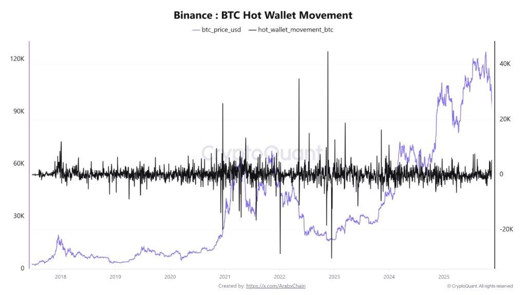 It’s vital to distinguish this from withdrawal-driven hot wallet activity, which would typically lead to a substantial decrease in exchange reserves. The actual increase in Binance’s reserves unequivocally confirms that liquidity remains firmly within the platform. Concurrently, the climbing hot wallet indicator underscores aggressive trading activity, which is highly probable to be contributing to the prevailing downward pressure in the market.