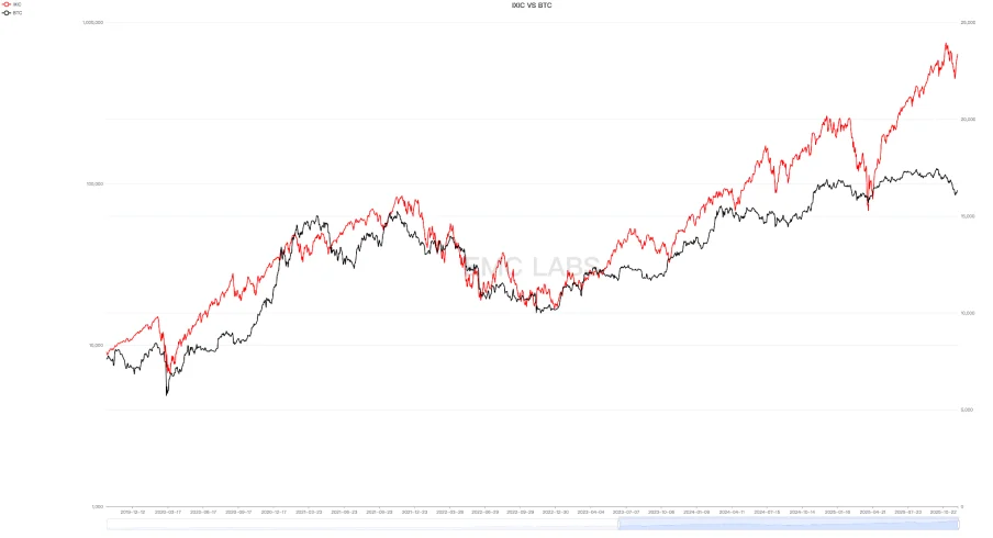 Notably, BTC’s correction preceded the Nasdaq’s by nearly a month, and its magnitude was almost four times greater (BTC: -36.45% vs. Nasdaq: -8.87%), demonstrating an elasticity 2-3 times higher than previous instances.