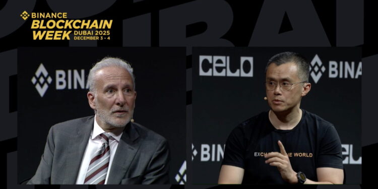 Dubai, December 4th – The “Binance Blockchain Week” became the epicentre of a high-stakes intellectual showdown as two titans from opposing financial realms locked horns. Changpeng Zhao (CZ), founder of Binance and a leading figure in the crypto world, squared off against Peter Schiff, a renowned economist, staunch gold advocate, and long-time Bitcoin sceptic. Their heated debate centred on a fundamental question: what truly underpins the value of digital currencies?