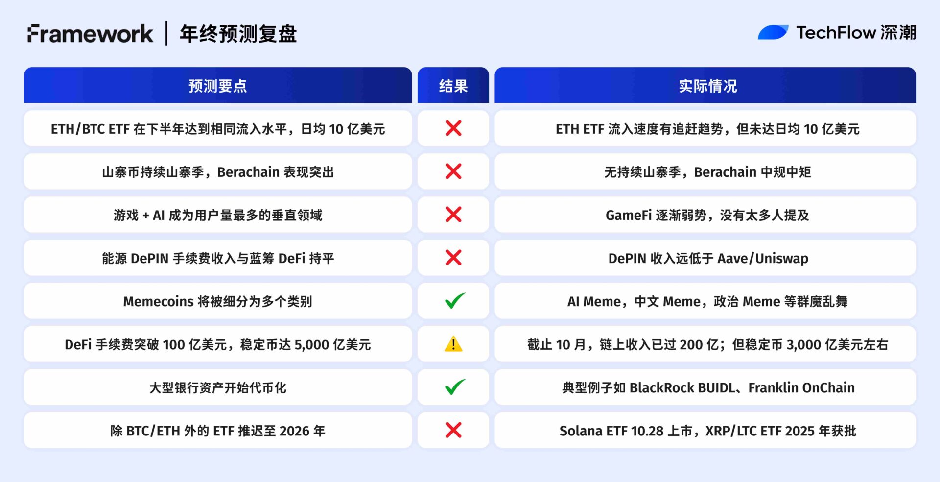 Beyond institutional forecasts, we also examined some representative individual predictions from the past year. Vance Spencer, co-founder of Framework, offered his insights for 2025, particularly concerning the crypto landscape: