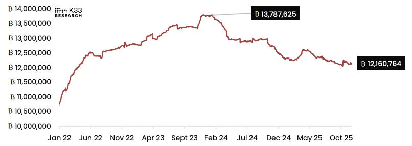 Looking ahead, K33 anticipates a gradual easing of sell-side pressure. Lunde notes that roughly 20% of Bitcoin’s total supply has been “reawakened” over the past two years. As this significant wave of long-term selling pressure is progressively digested, on-chain selling power is expected to approach saturation.