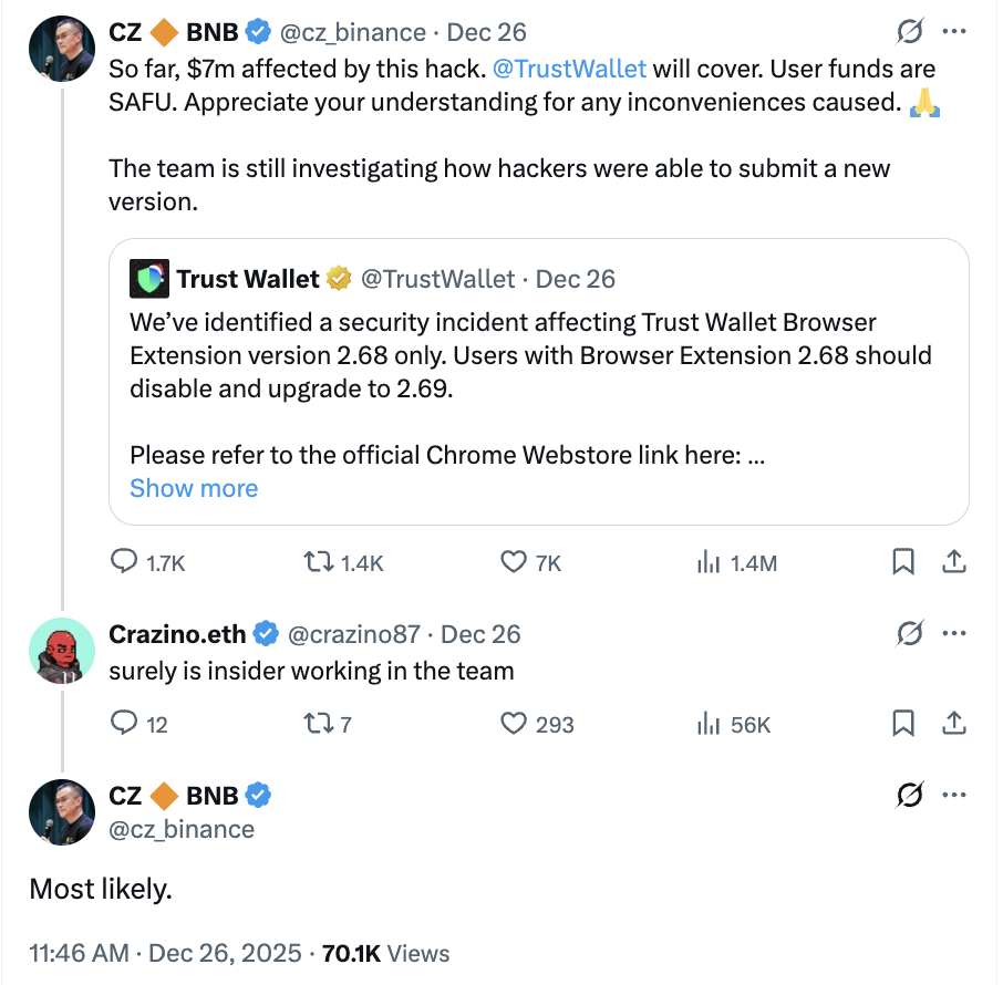 Trust Wallet Browser Extension Exploit: $7 Million Stolen, Binance CZ Pledges Full Compensation