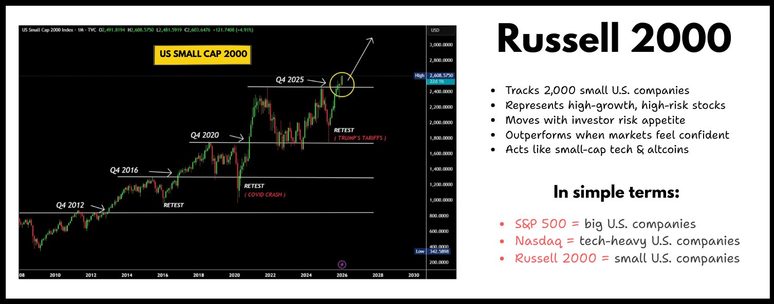 When altcoins begin their price surges, the capital rotation has already completed its journey through other markets. The signal for returning risk appetite first appears in markets that don’t rely on hype to ascend. Small caps are precisely such a market. They don’t rally on memes; they rise because borrowing becomes easier and capital regains confidence.