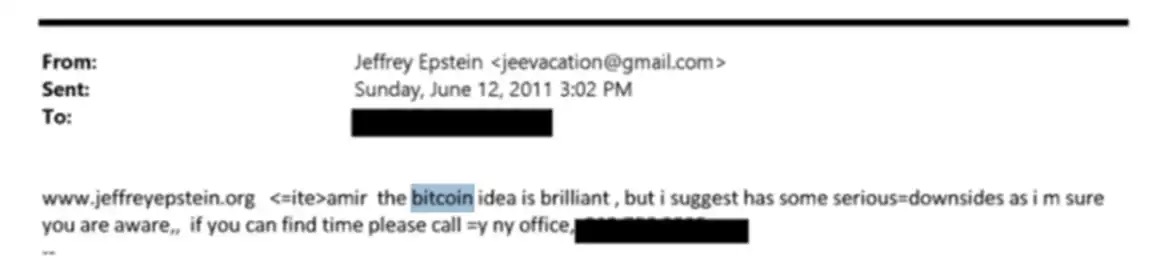 An email dated June 12, 2011, near Bitcoin’s peak for that year, shows Epstein stating, “Bitcoin is a brilliant idea, but it has some serious drawbacks.” This early insight highlights his surprising awareness of the technology at a foundational stage.