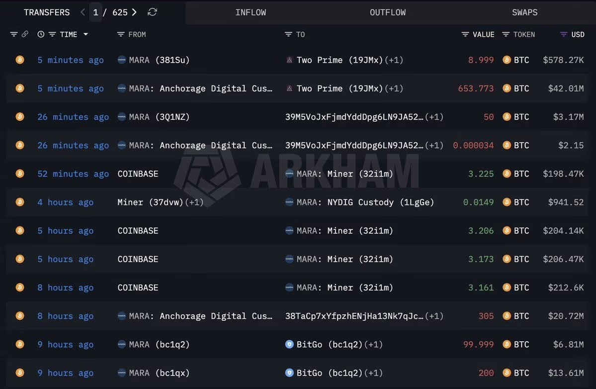 The cryptocurrency market is currently navigating turbulent waters, marked by widespread retail investor distress and institutional capital withdrawals. Now, even the industry’s foundational “producers”—Bitcoin miners—are showing signs of unease. On-chain data from monitoring platform Arkham reveals that MARA Holdings, a leading global Bitcoin mining firm, recently transferred a significant 1,318 BTC, valued at approximately $86.89 million, to various counterparties and custodial services. This substantial movement has ignited strong market speculation and anxiety, with many fearing it signals an impending “forced sell-off” by miners to bolster dwindling cash reserves.