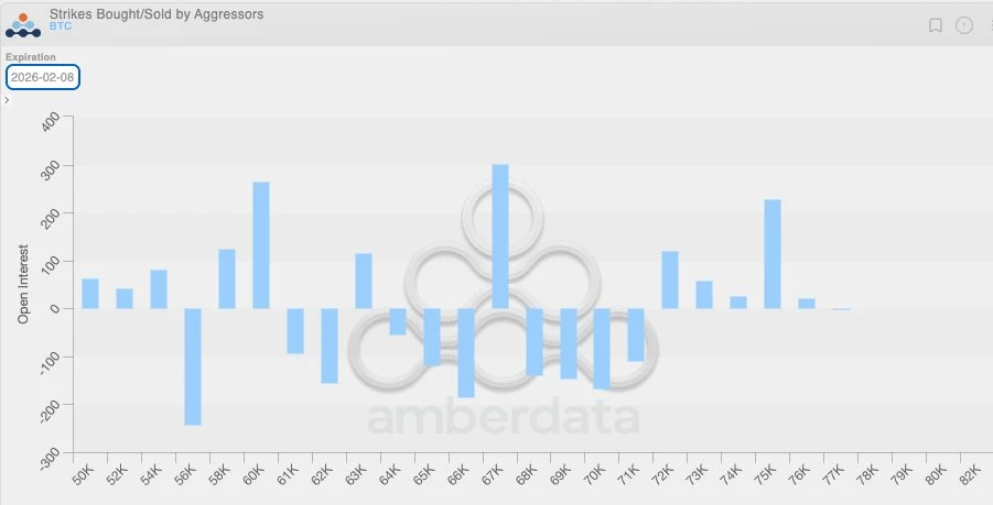 This negative Vanna dynamic gains further clarity when combined with another factor: a period of generally low volatility had led crypto-native clients to predominantly buy put options in recent weeks. This placed crypto dealers in a natural “short Gamma” state, underpricing the potential for significant future volatility. When the actual large move materialized, this structural imbalance further amplified the downward pressure. The position distribution chart below vividly illustrates this, showing dealers heavily concentrated in short Gamma positions for put options within the $64,000 to $71,000 range.