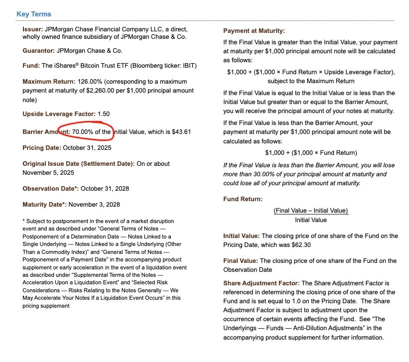 Consider a note priced by JPMorgan last November, with a knock-in barrier precisely at $43,600. If similar notes continued to be issued in December, and Bitcoin prices subsequently dropped by another 10%, one can envision a significant cluster of knock-in barriers accumulating in the $38,000-$39,000 range—the proverbial “eye of the storm.”