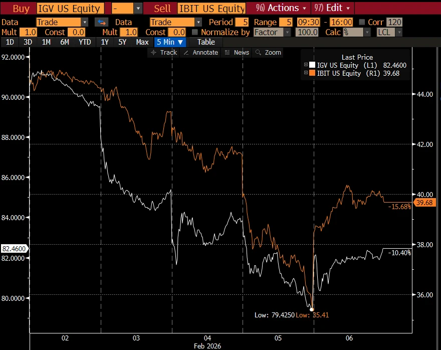 Firstly, this round of Bitcoin selling likely impacted diversified asset portfolios or strategies that extend beyond purely crypto-native participants. This could include the aforementioned multi-strategy hedge funds or even BlackRock-style model portfolios that dynamically allocate between IBIT and software ETFs like IGV, triggering automated rebalancing under high volatility.