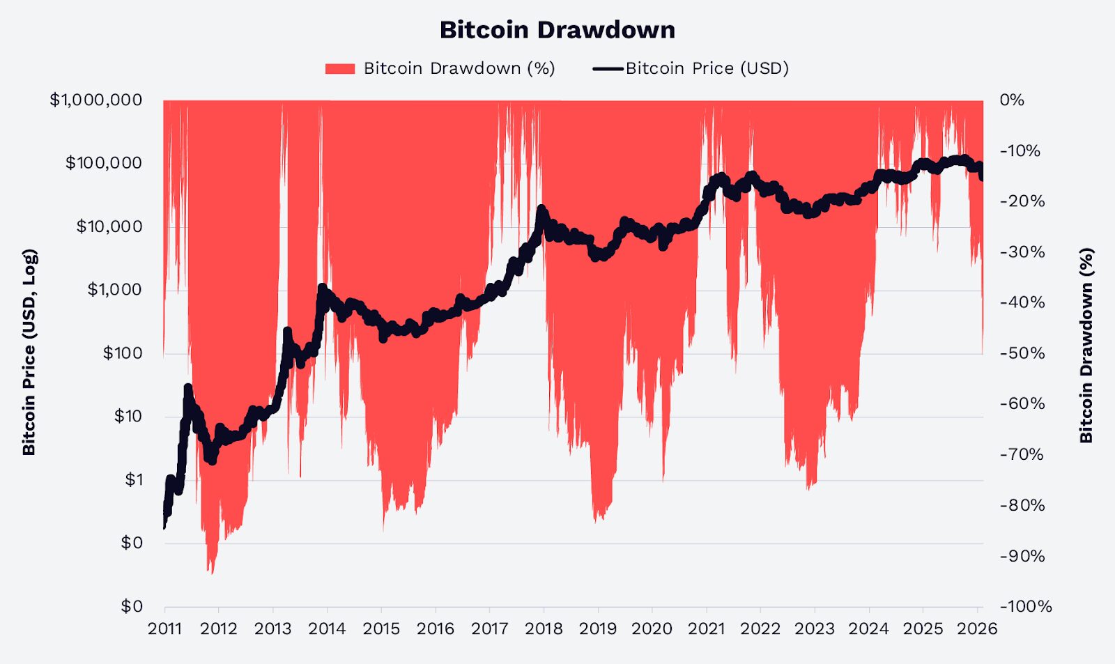 While Bitcoin remains a volatile asset, the magnitude of its drawdowns has demonstrably decreased over time. Previous cycles frequently saw peak-to-trough declines exceeding 70-80%. In the current cycle, spanning from 2022 to early 2026, drawdowns from historical highs have not surpassed approximately 50%.