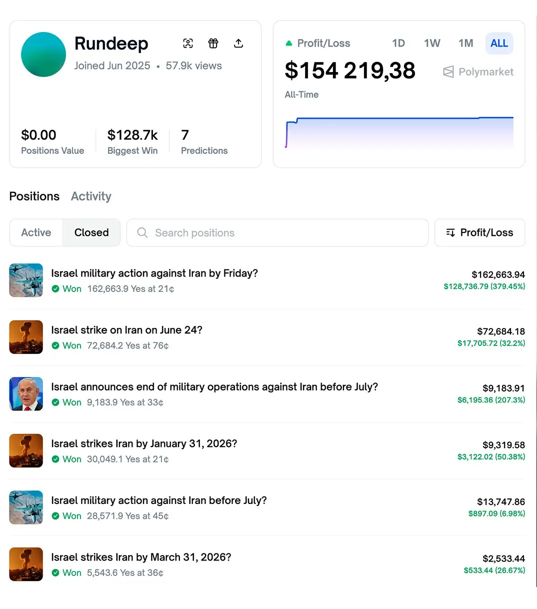 The user, identified as “Rundeep,” reportedly joined Polymarket in June 2025. What followed was an astonishing display of predictive accuracy: a perfect 100% win rate across six distinct prediction markets related to Israeli military operations. Even more striking, five of these successful wagers were placed when the initial probability of the outcome was below 50%, indicating an extraordinary, almost prescient, insight. Cumulatively, Rundeep’s activities yielded profits exceeding $150,000.