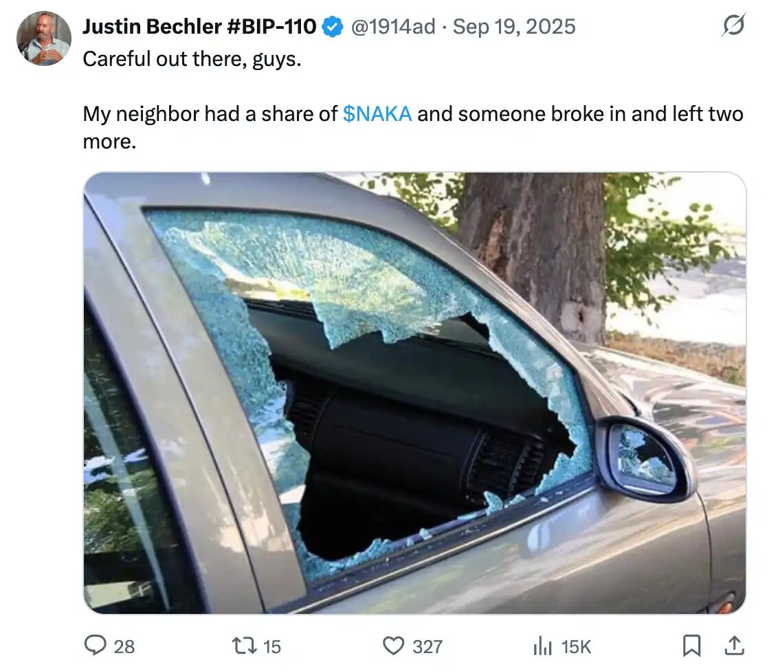 KindlyMD, originally an obscure micro-cap stock on Nasdaq, served as the vehicle for Nakamoto Holdings’ public debut via a reverse merger. This move was bolstered by a substantial $510 million Private Investment in Public Equity (PIPE) and $200 million in convertible debt. On paper, it appeared to be the birth of a Bitcoin treasury titan. A new generation of Bitcoin influencers eagerly championed $NAKA, urging investors to buy in with the promise of indirect Bitcoin ownership.