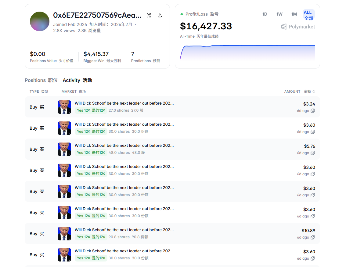 PANews investigated an attacker’s address flagged by the community. Registered in February 2026, this account participated in only seven markets yet amassed a total profit of $16,427. Crucially, the bulk of these earnings were realized within a single day. The fact that a prediction market leader, valued at an estimated $9 billion, can have its foundational liquidity undermined by an exploit costing mere cents reveals a vulnerability far deeper than a simple technical glitch.