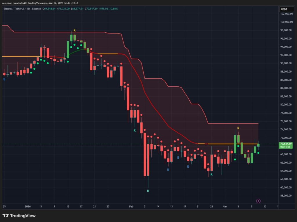 The highly anticipated U.S. Consumer Price Index (CPI) data, released last night, largely aligned with market expectations. While typically a significant market mover, its impact was notably muted this time, overshadowed by escalating geopolitical tensions in the Middle East. Consequently, U.S. stock indices lacked clear direction, and Bitcoin (BTC) continued to hover around the critical $70,000 resistance level. Despite appearing to stabilize in the short term, prevailing market sentiment remains pessimistic, casting doubt on BTC’s ability to firmly hold above $70,000. Ultimately, the trajectory of global markets, including cryptocurrencies, seems intrinsically linked to developments in the Middle East.