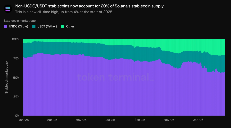 Notably, the supply of non-USDC/USDT stablecoins has grown by approximately 15 times over the past 12 months, now accounting for over 20% of the total supply. This “dual-dominant, multi-strong” landscape significantly reduces Solana’s reliance on any single issuer, thereby enhancing the overall resilience and decentralization of the ecosystem.