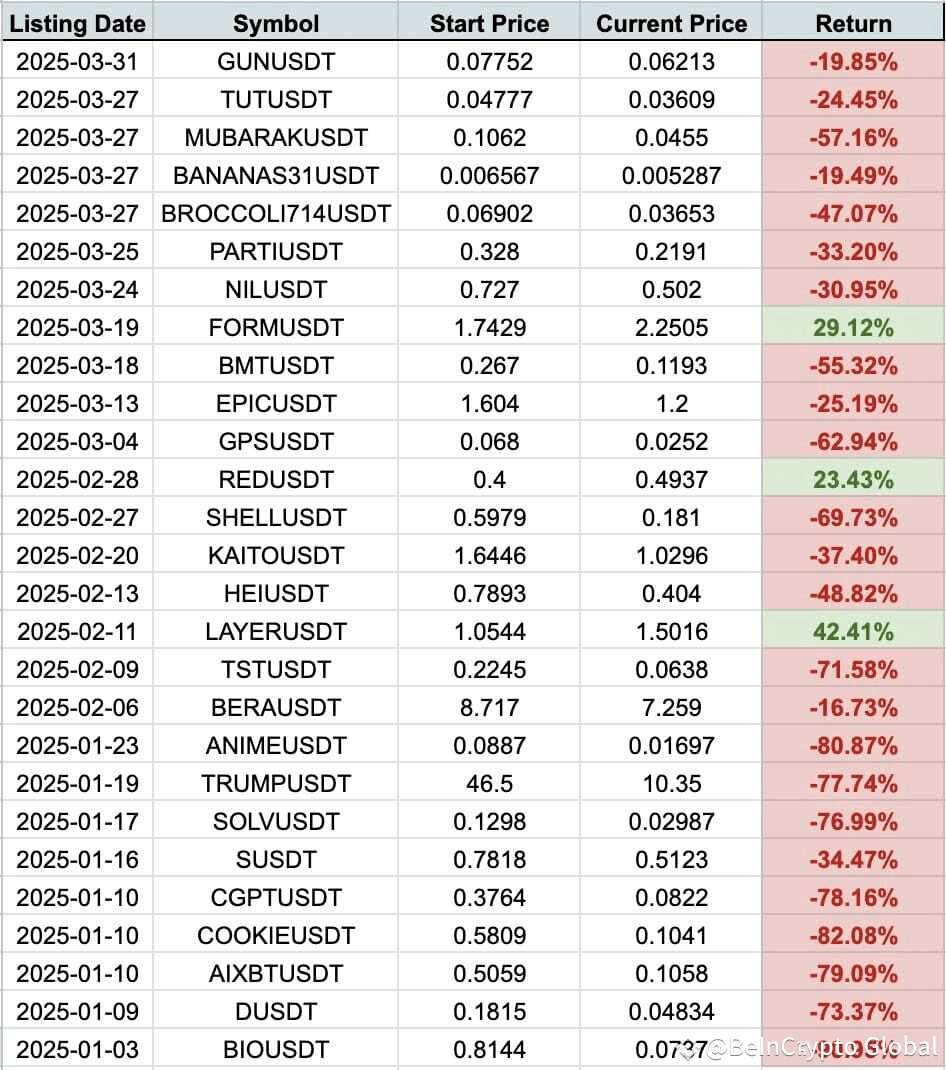 It’s unequivocally clear: Binance is no longer a sanctuary for underperforming projects.