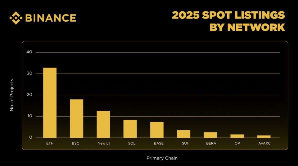 In 2025, Binance facilitated the listing of 87 projects spanning 16 distinct sectors.
