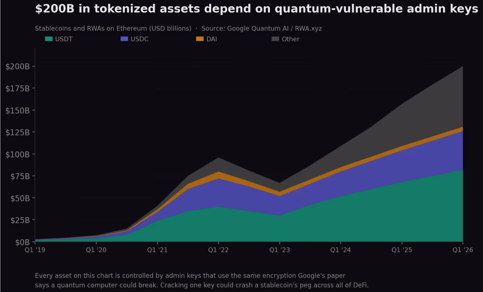 The implications extend far beyond Ethereum itself. These administrator accounts frequently control the “minting rights” for major stablecoins like USDT and USDC. This means a quantum hacker, by compromising just one set of these keys, could effectively become an unlimited token printer, triggering a catastrophic chain reaction across all lending markets collateralized by these tokens. The whitepaper estimates that a staggering $200 billion worth of stablecoins and tokenized assets on Ethereum are currently reliant on these vulnerable administrator keys.