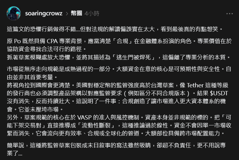 Max underscored a critical point: the core of the VASA draft focuses on the admission and risk control mechanisms for Virtual Asset Service Providers (VASPs), not on directly regulating the assets themselves. He dismissed the “overly linear” deduction that potential delisting of trading pairs would lead directly to “liquidity collapse” as highly irresponsible and unprofessional, characterizing the post’s framing of the draft as a “doomsday narrative.”