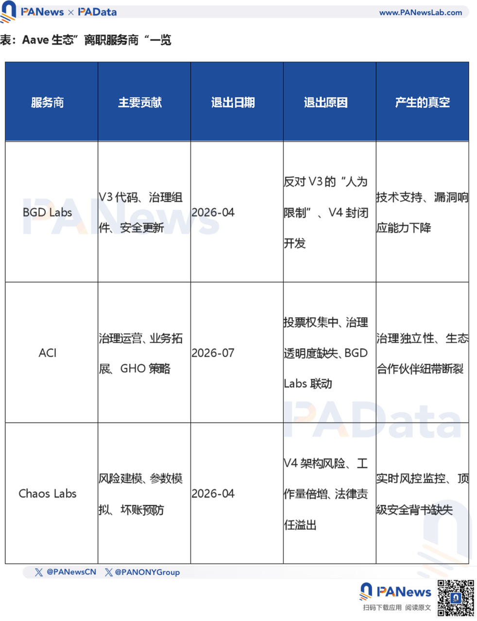 On April 7th, Chaos Labs, a premier risk management firm that had safeguarded Aave V2/V3 for three years with a record of “zero major bad debts,” announced its disengagement from Aave. The departure of this critical institution directly impacts Aave’s security posture.
