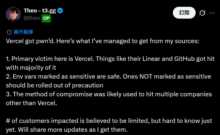 Prominent developer community figure Theo Browne also highlighted on X that sources suggest Vercel’s internal Linear and GitHub integration systems were most severely affected, potentially broadening the scope of compromised data.